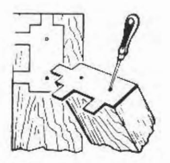 Still another method is to use a template — of cardboard, tin or any suitable material. Make it so that it can be positioned accurately on each workpiece. Use a scratch awl to transfer the hole marks to the workpieces, through the guide marks (or holes) in the template.
