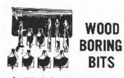 Specially designed for power wood boring. Precision-ground, hardened alloy steel with brad points for no-jump starts. Sizes from 1/8" to 1-1/4".