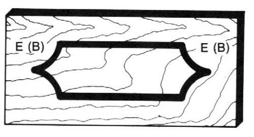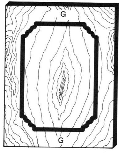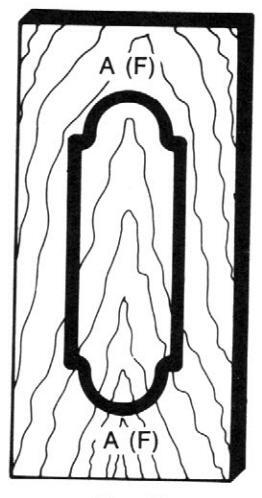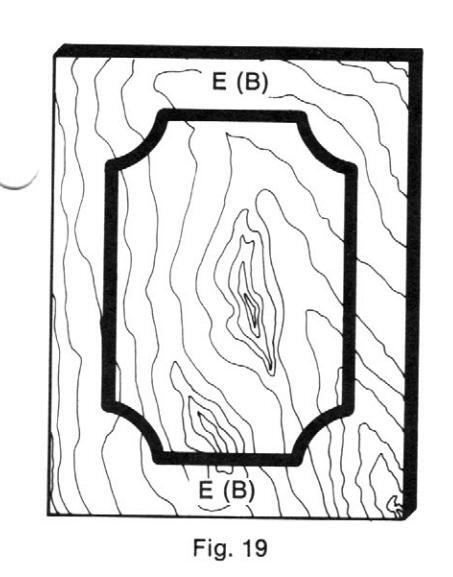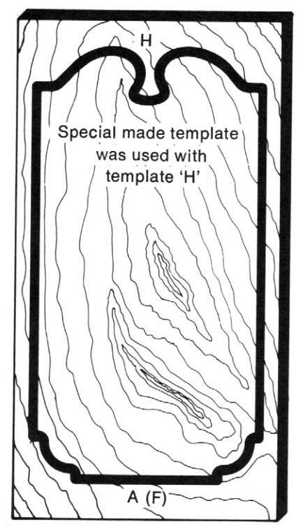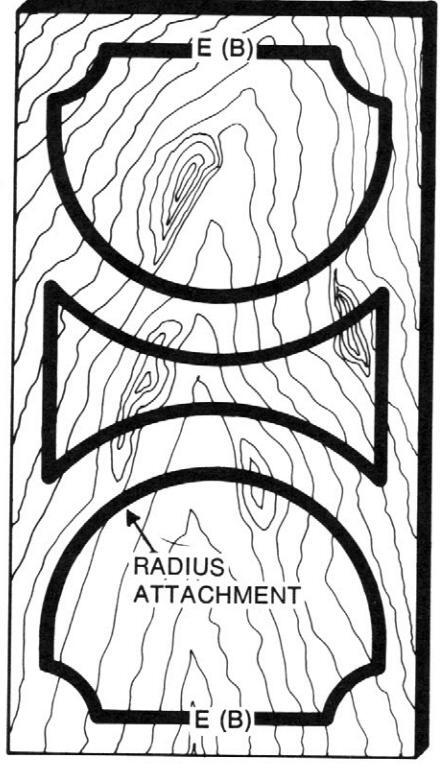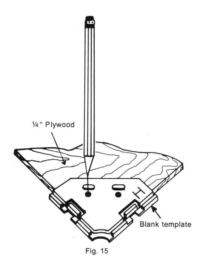 Draw the desired design on the top surface of the plywood. Figure 14 shows an example of a finished template. After completing the design layout, saw the plywood to match the design. Sand the sawed edge smooth.