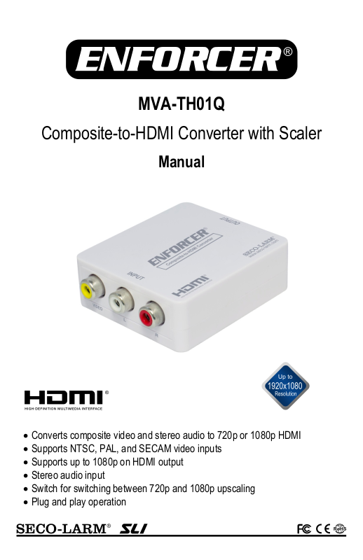• Converts composite video and stereo audio to 720p or 1080p HDMI