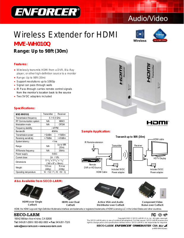 Wirelessly transmits HDMI from a DVR, Blu-Ray