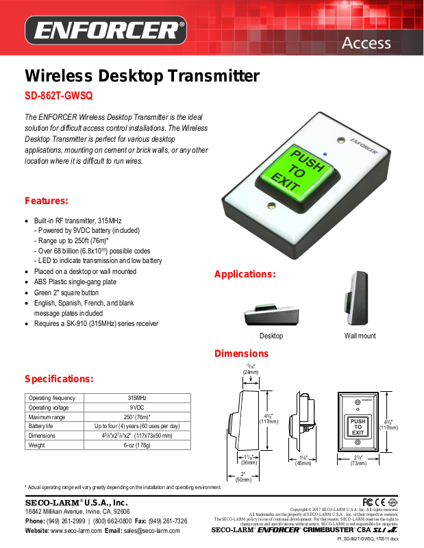 change prices and specifications without notice. SECO-LARM is not responsible for misprints.