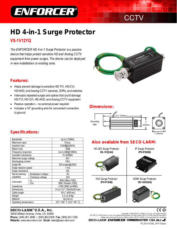 Helps prevent damage to sensitive HD-TVI, HD-CVI,