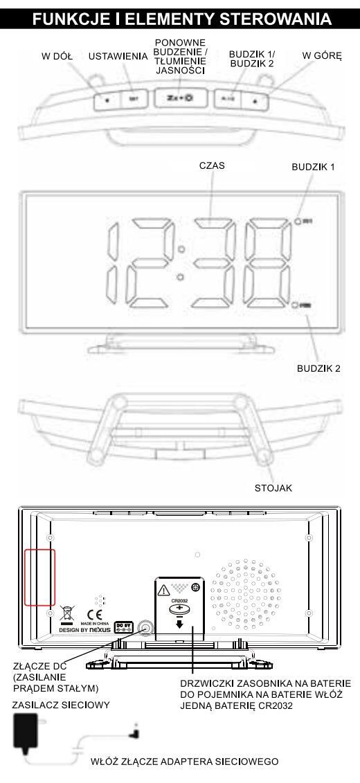 Jeśli dojdzie do przerwania dostawy energii, wyświetlacz LED zgaśnie i budzik nie będzie działał. Bateria zapasowa zachowa czas i wszystkie ustawienia urządzenia. Zapewnij, aby użyta została nowa bateria litowa CR2032. Nowa bateria CR2032 potrafi zasilać zegar nieprzerwanie przez około 3 dni.
