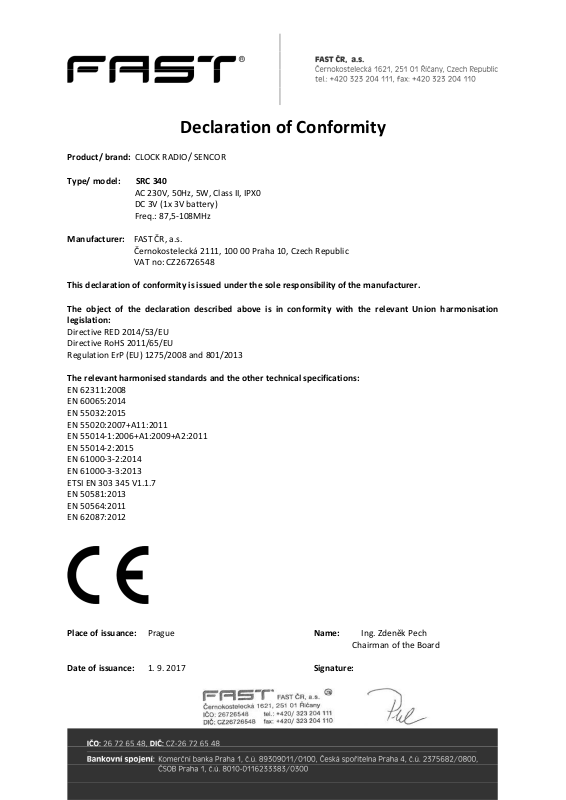 Place of issuance: Prague Name: Ing. Zdeněk Pech