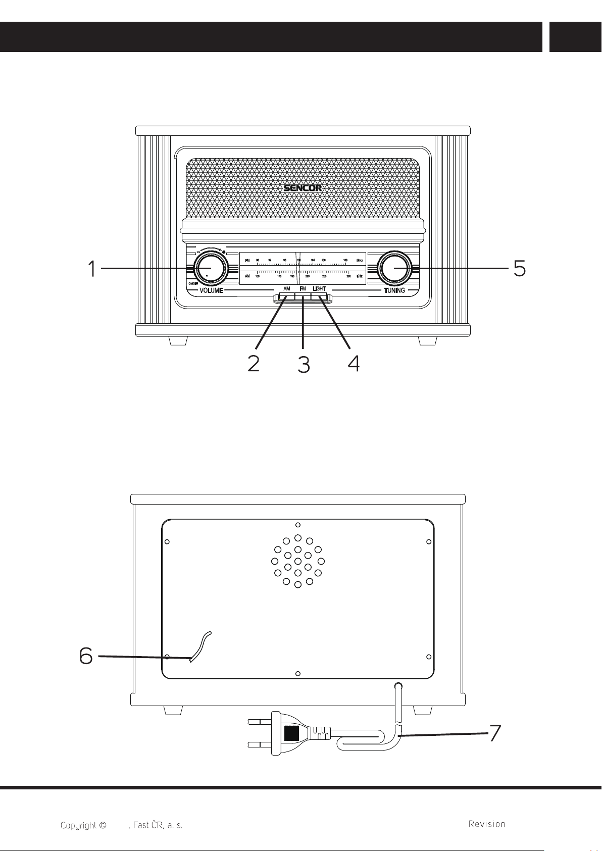 2. Pull out the antenna (6) for the FM band. To optimise FM reception, turn the radio horizontally until the best reception is