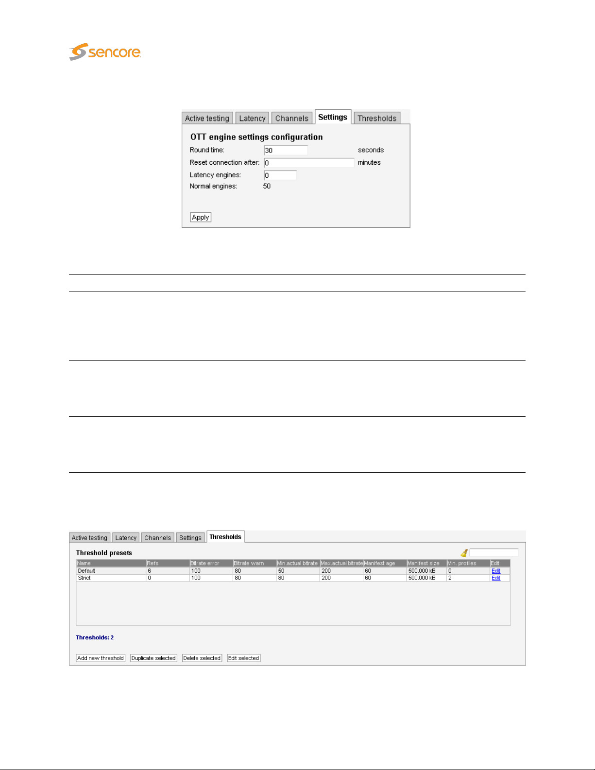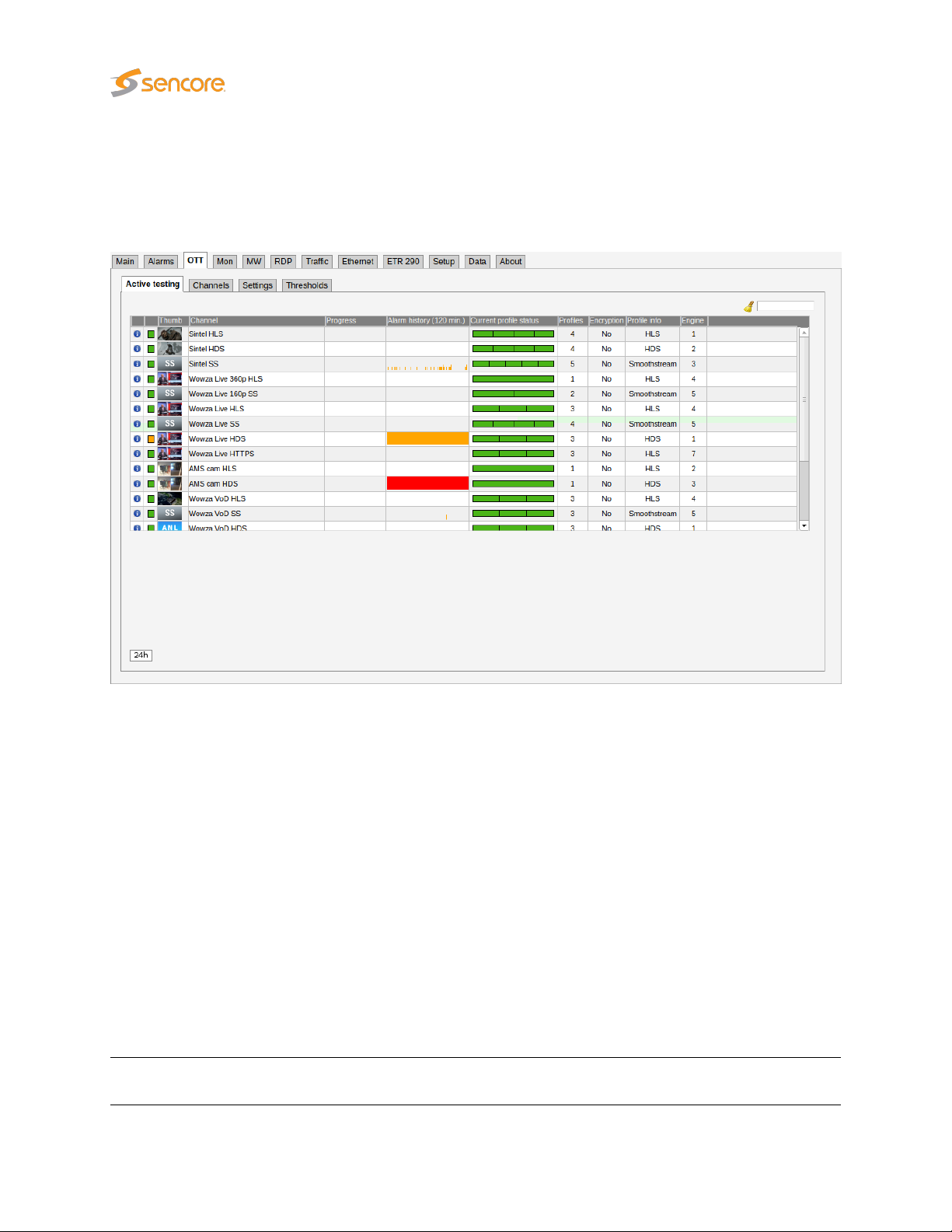 Optional OTT monitoring allows the operator to set up active testing of Over-the-top type signals as