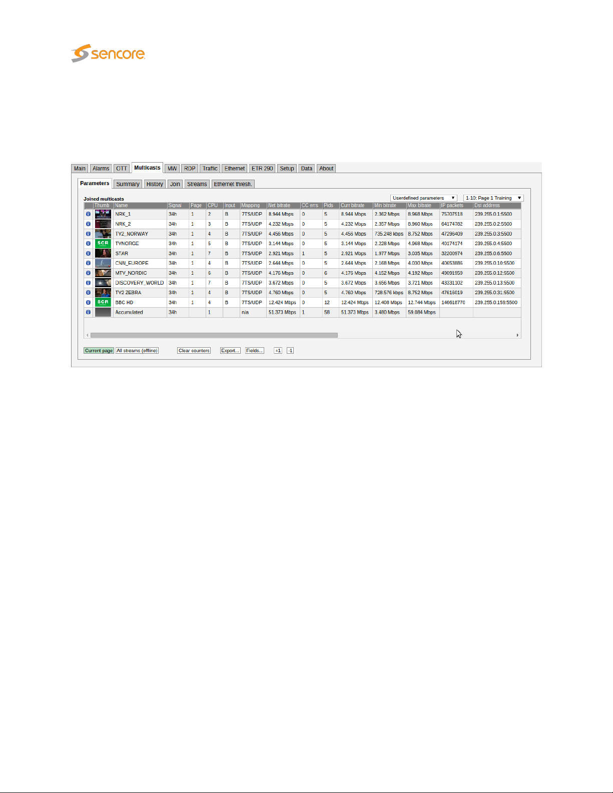 errors and Bitrate. These parameters are the same as on the Multicasts page.