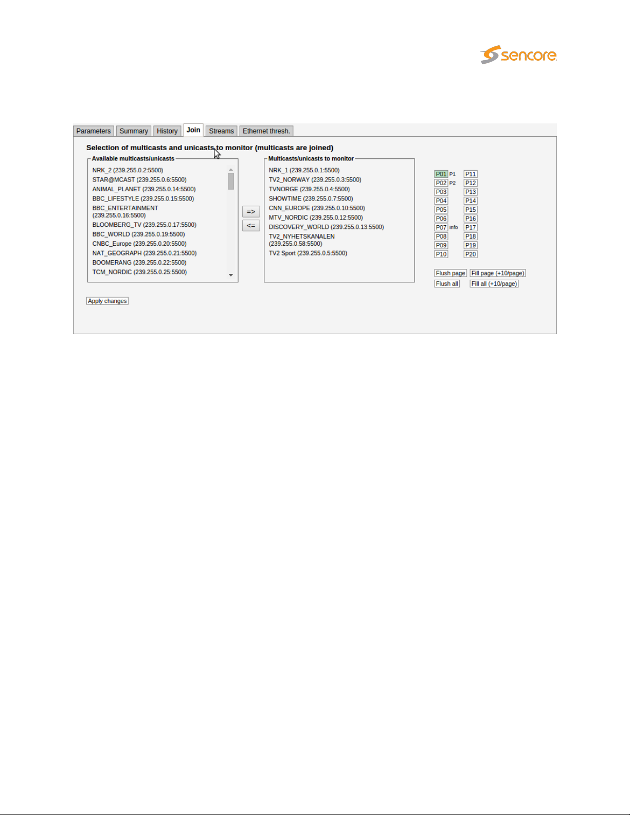 A drop down menu allows filtering of detected streams, making is possible to view streams of a specific
