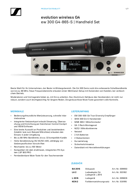 ew 300 G4-865-S-Aw+470 - 558 MHzArt.-Nr. 508423