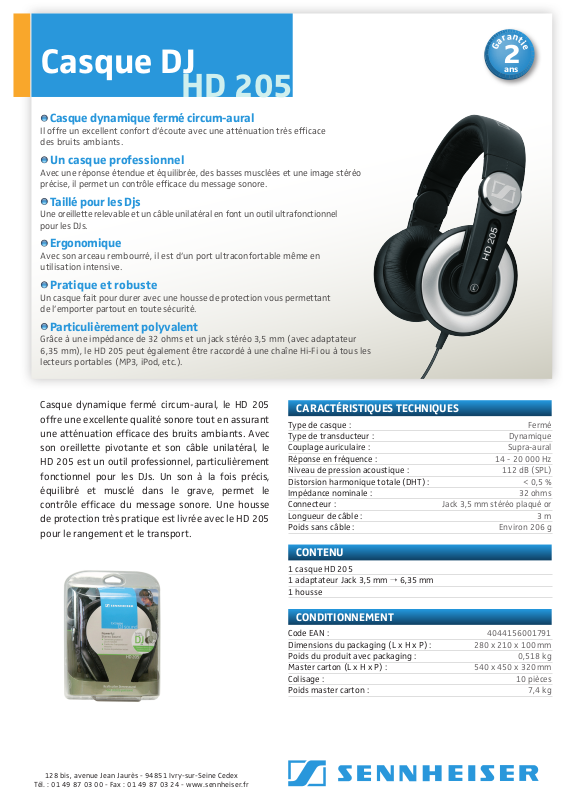 Casque dynamique fermé circum-aural, le HD 205