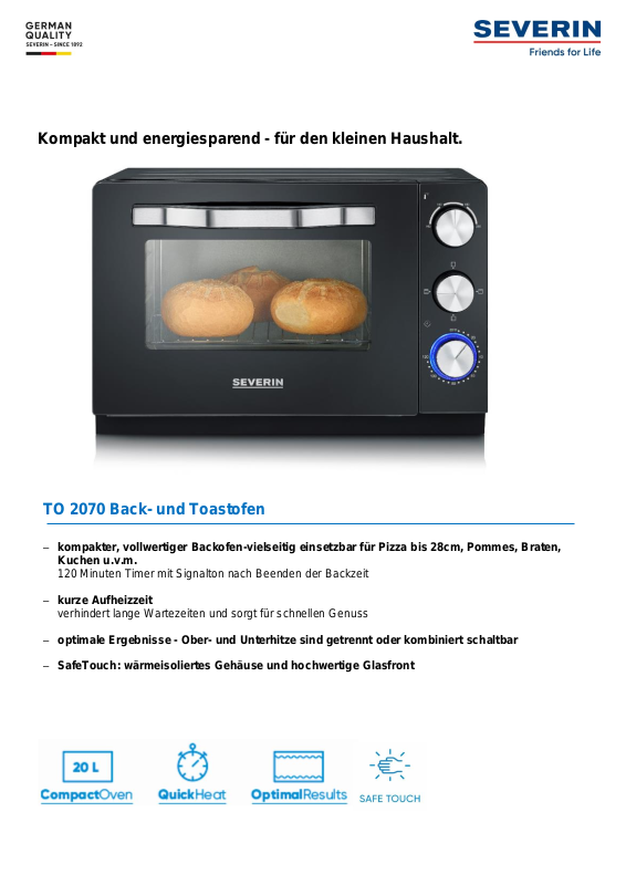Pizza, Überbackenes oder Pommes – der kompakte Back- und Toastofen für leckere Ofenspeisen.