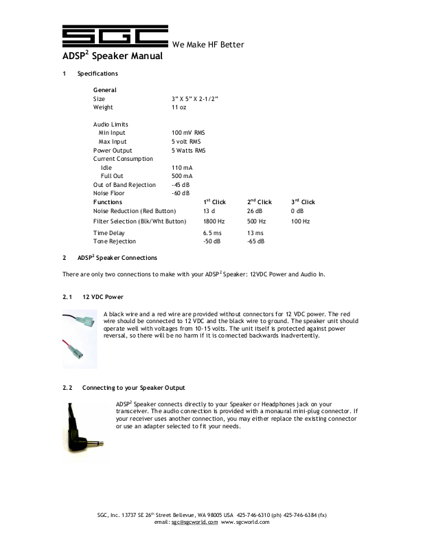 and re-apply. This should re-set the speaker. For other questions, contact SGC technical support.