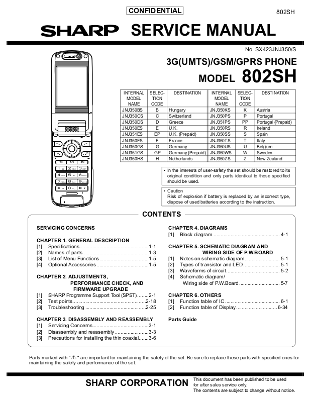 1. When requested, back up user’s handset data using SPST (SHARP Programme Support Tool). Otherwise, before servicing, warn the user that