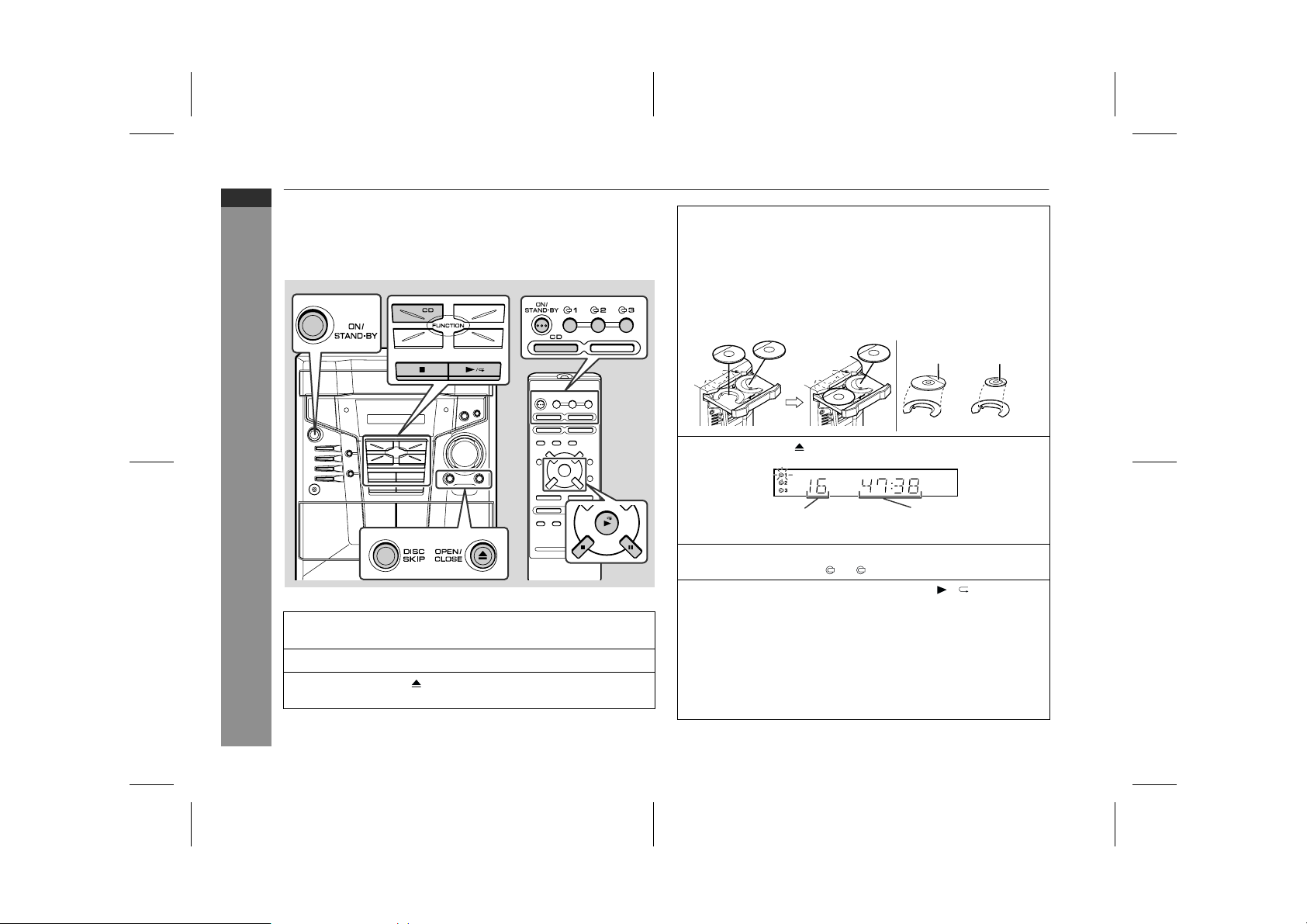 2 Miközben lenyomva tartja a CLOCK és az DISC SKIP gombokat,