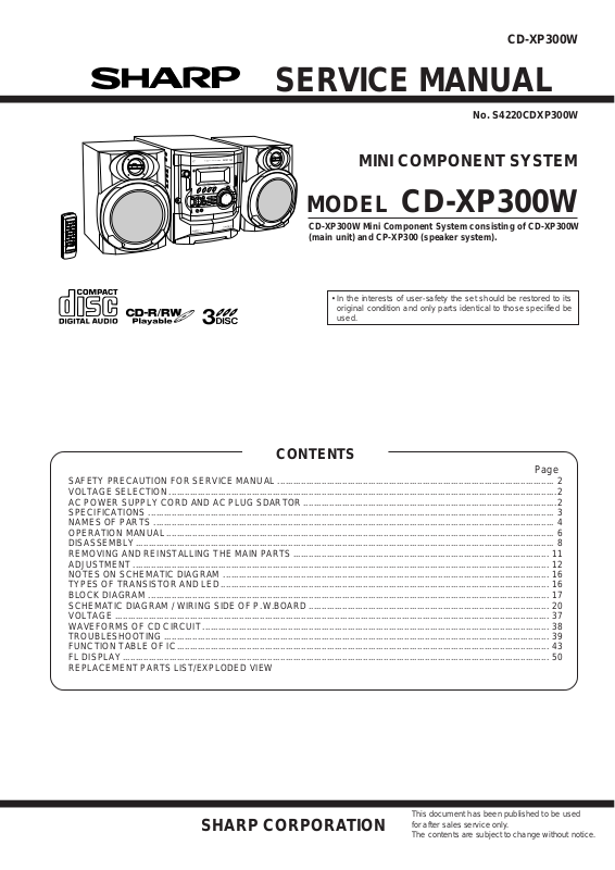 CD-XP300W Mini Component System consisting of CD-XP300W