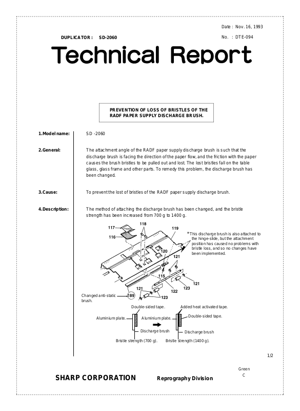 2.General: The attachment angle of the RADF paper supply dis charge brush is such that the