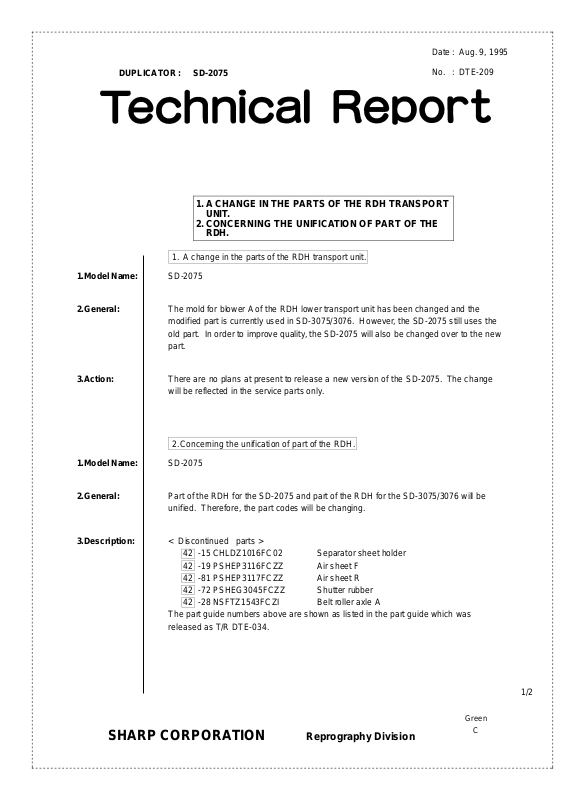 2.General: Part of the RDH for the SD-2075 and part of the RDH for the SD-3075/3076 will be