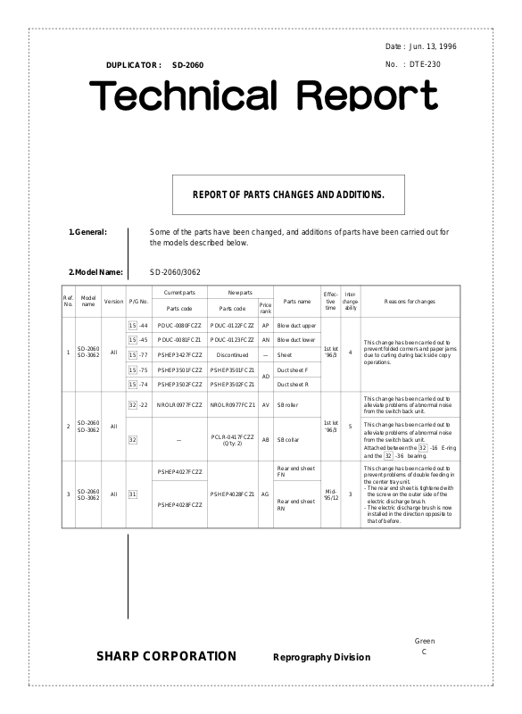 1.General: Some of the parts have been changed, and additions of parts have been carried out for