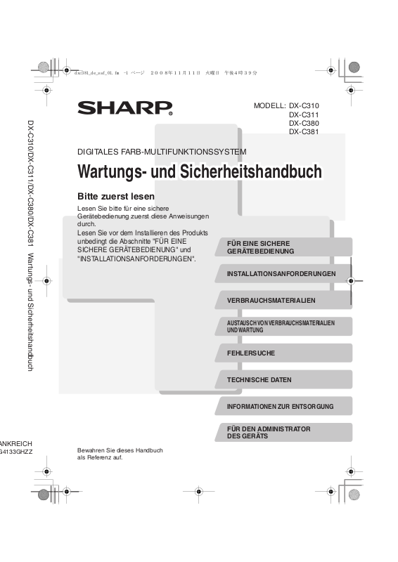 Die SHARP Corporation übernimmt keinerlei Haftung für den Inhalt des vorliegenden
