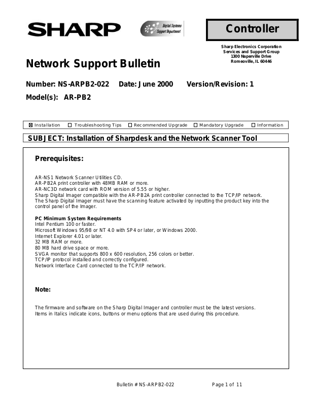 SUBJECT: Installation of Sharpdesk and the Network Scanner Tool