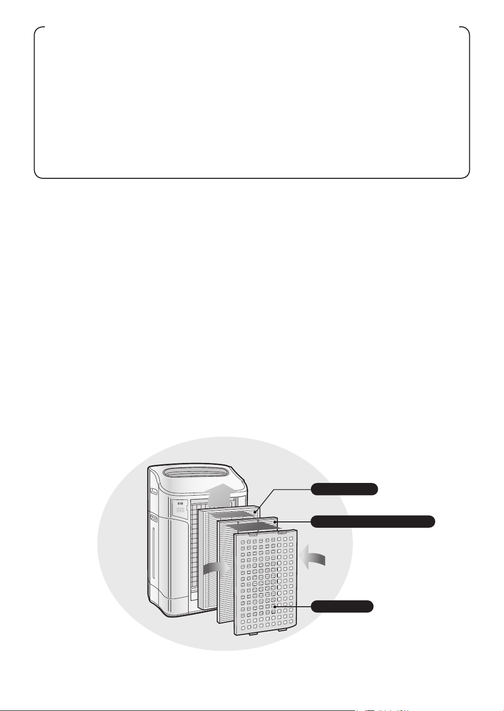 • The air purifi er is designed to remove air-suspended dust and odour, but not harmful gases (for