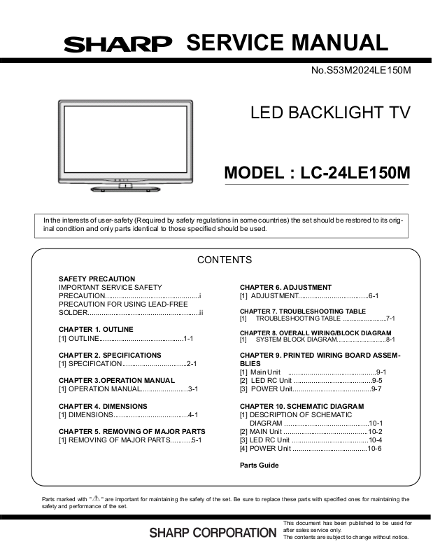 •“PWBs” of this model employs lead-free solder. The LF symbol indicates lead-free solder, and is attached on the PWBs and service manuals. The