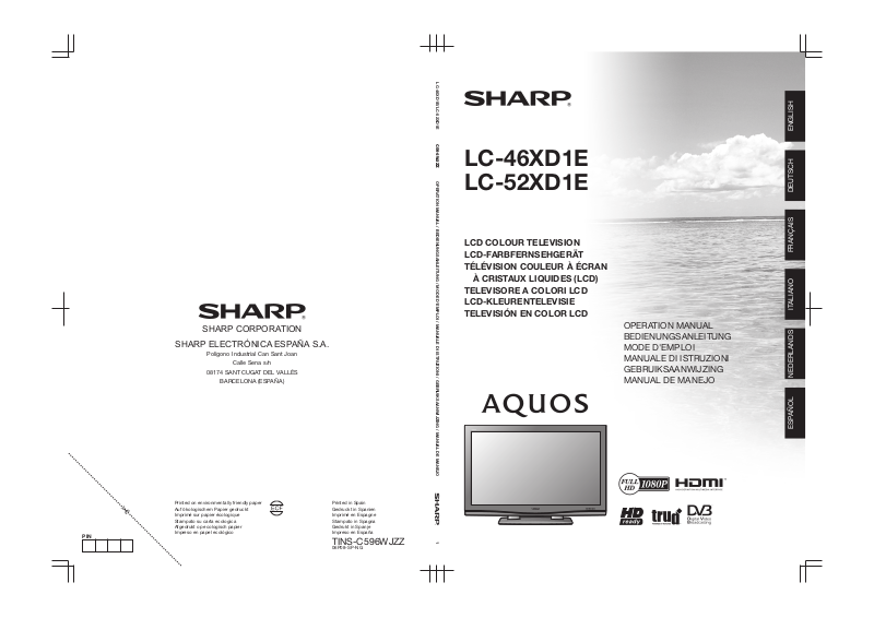 Nous vous remercions pour votre achat de ce téléviseur couleur à cristaux liquides SHARP. Pour en assurer