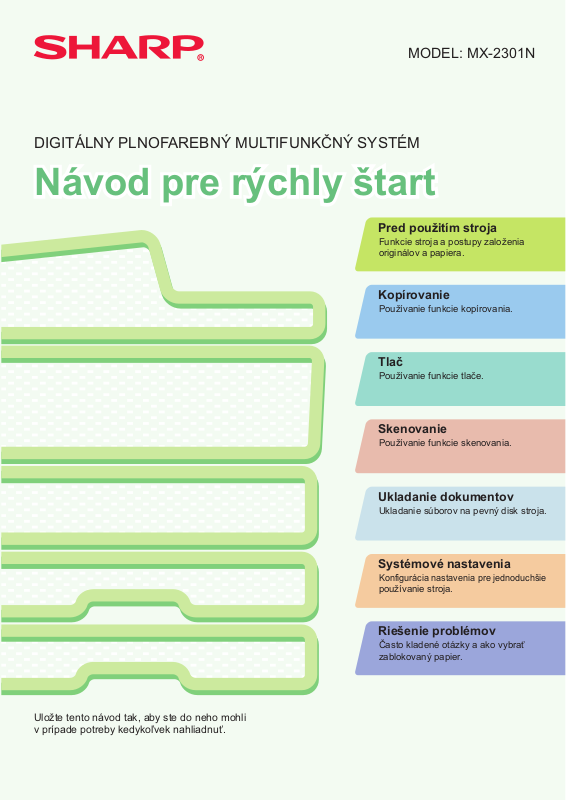 • Všade, kde je v tomto návode uvedené "MX-xxxx", si za "xxxx" dosaďte označenie vášho modelu.