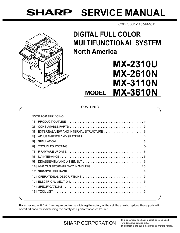 Sharp MX-2310U, MX-2610N, MX-3110N, MX-3610N Service Manual