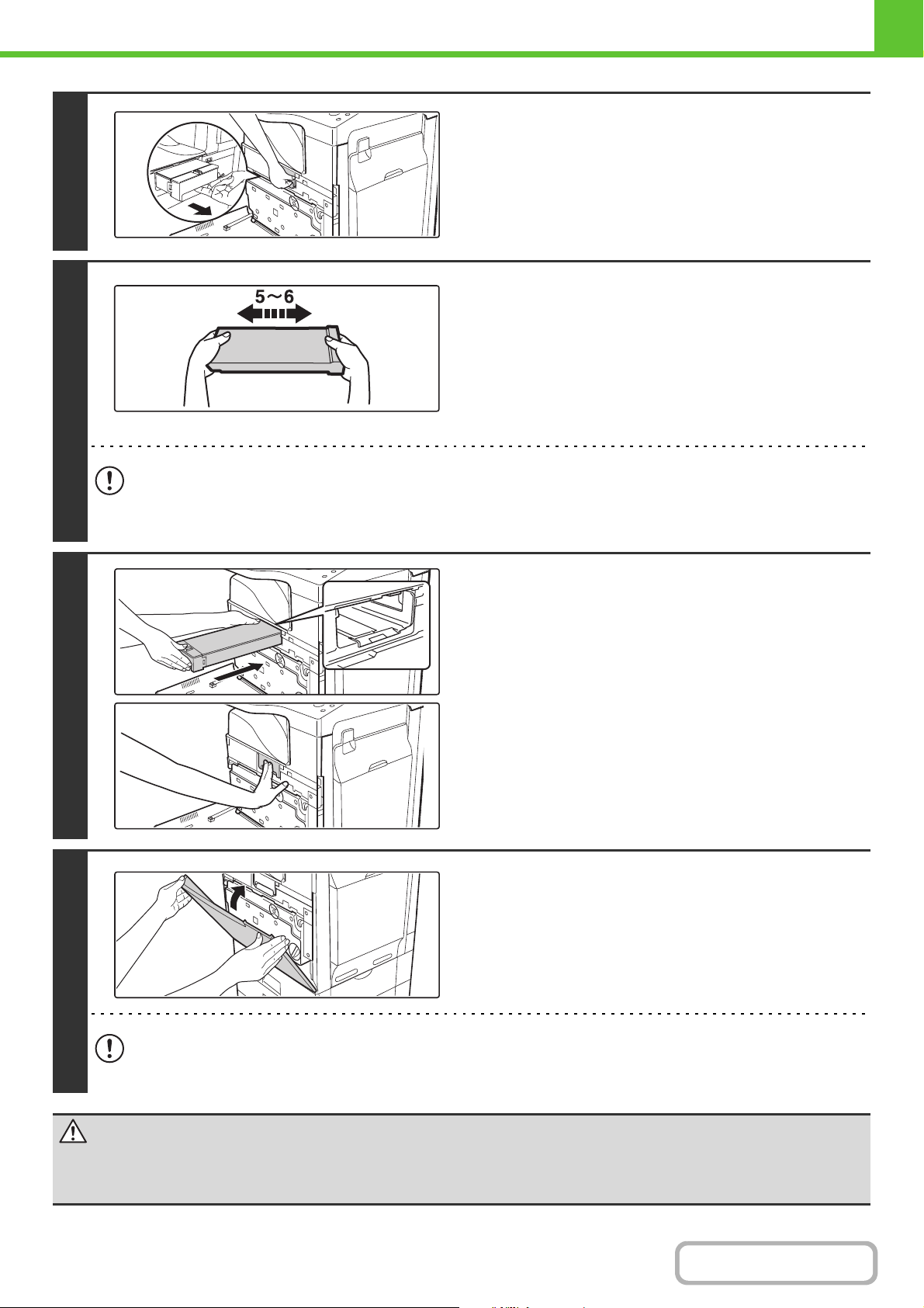 schütteln. Wenn Sie die Tonerkartusche erst nach der Entfernung des Schutzmaterials schütteln, könnte Toner auslaufen.