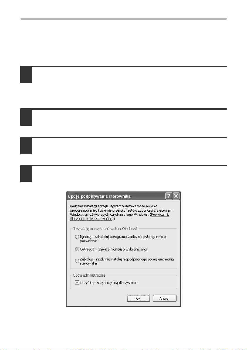 Płyta CD-ROM nie zawiera oprogramowania dla systemów Windows 98/Me/NT 4.0. Oprogramowanie dla systemów Windows 98/Me/NT 4.0 można uzyskać od autoryzowanego przedstawiciela firmy Sharp. Sterownika skanera nie można zainstalować w systemie Windows NT 4.0.