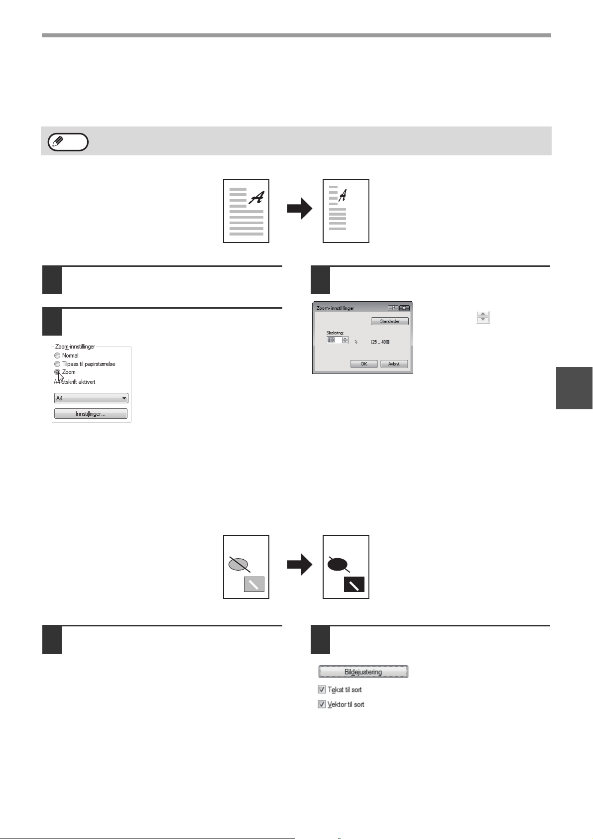 (For eksempel: tilpasse det utskrevne bildet til papiret, forstørre/redusere det utskrevne bildet)