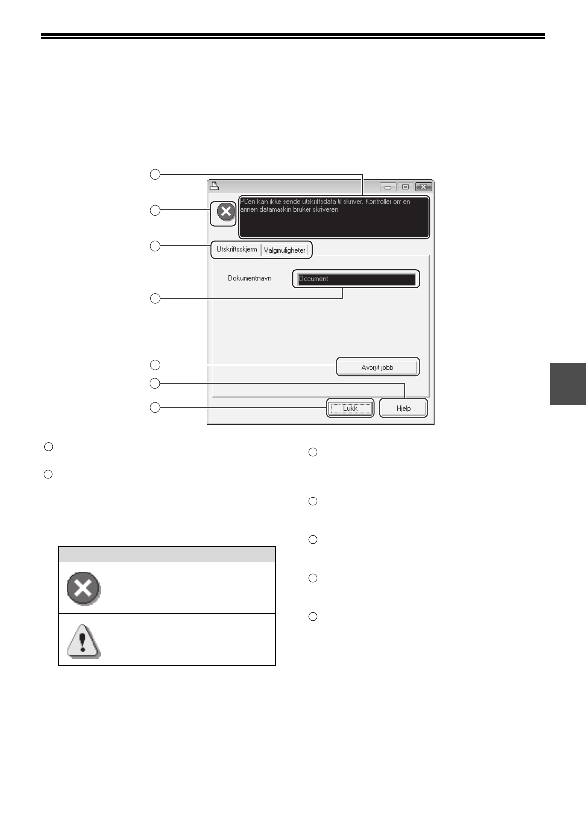 om utskriftsstatusen, navnet på dokumentet som blir skrevet ut, og feilmeldinger.