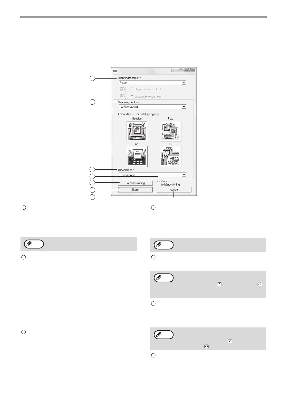 • Skjermbildene og prosedyrene som dukker opp i denne manualen er hovedsaklig for Windows Vista. Med andre