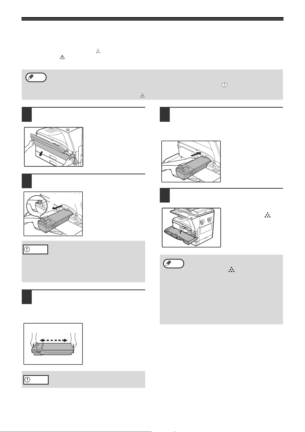 Når tonerpatronen har blitt tatt ut, må du ikke