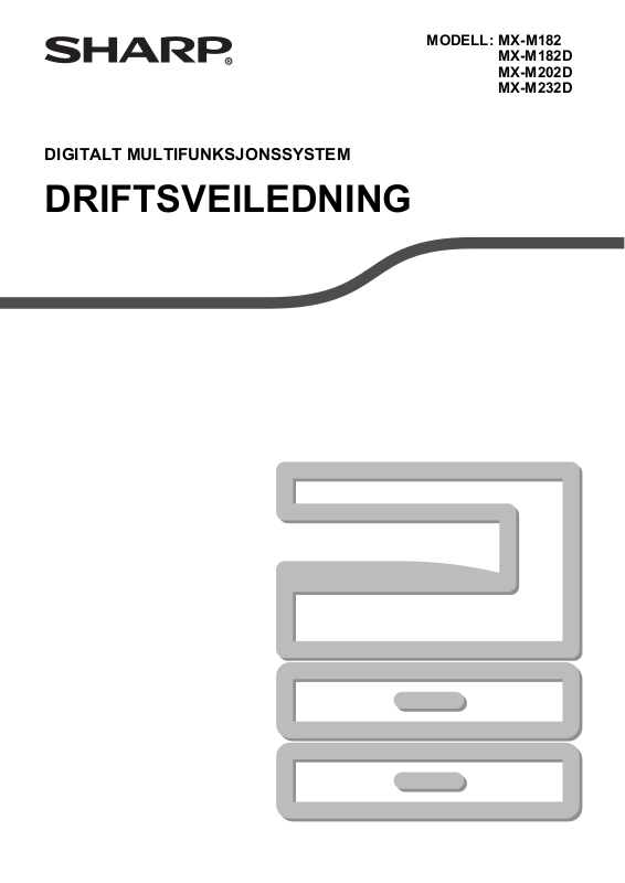 Denne manualen beskriver kopierings-, skriver- og skannerfunksjonene til MX-M182/MX-M182D/MX-M202D/MXM232D sitt digitale flerfunksjonssystem.