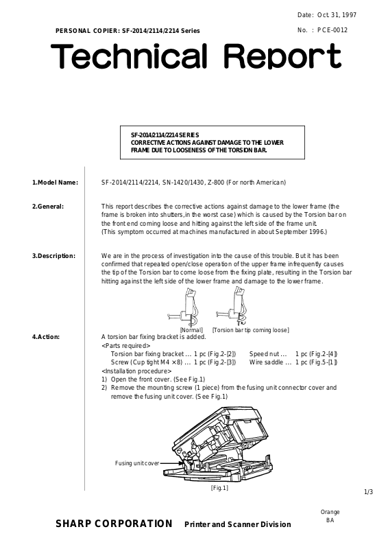 remove the fusing unit cover. (See Fig.1)
