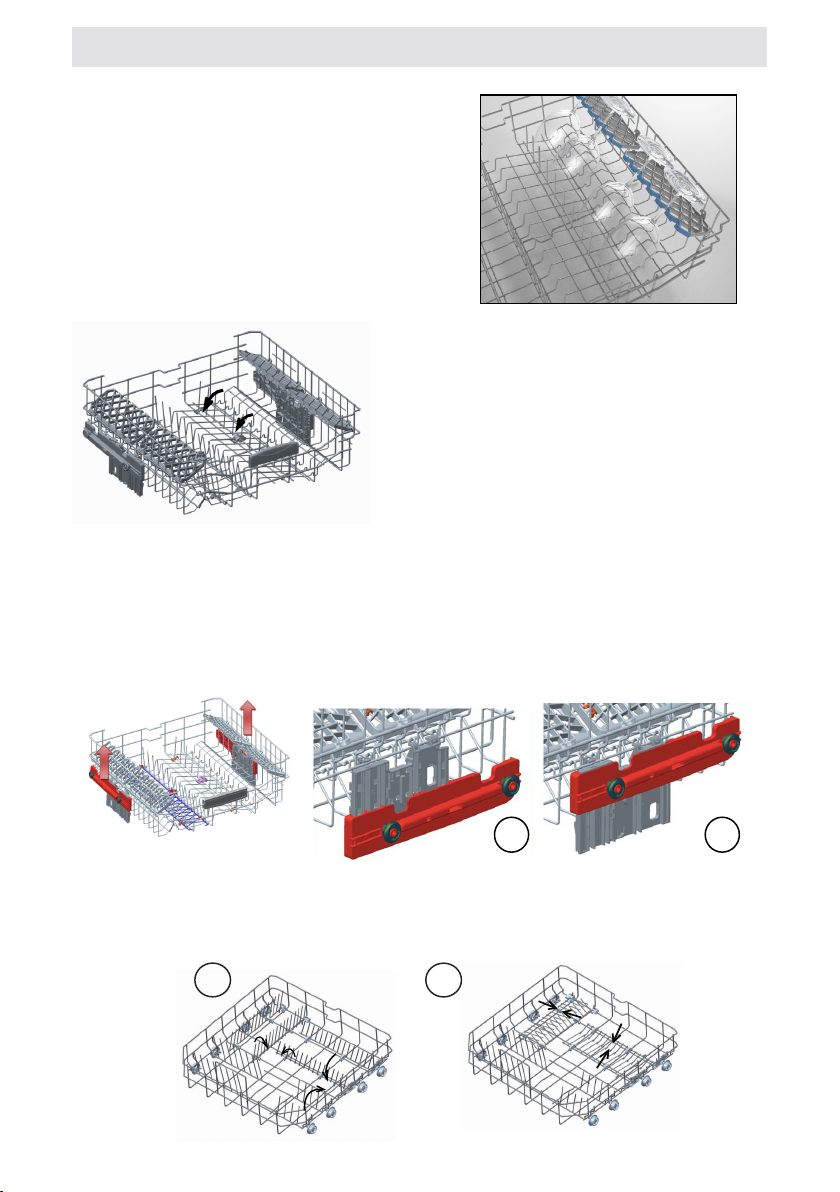 rekken, in het bovenste rek en in het onderste rek. Druk op knop totdat de lamp van het rek dat moet worden gewassen brandt.