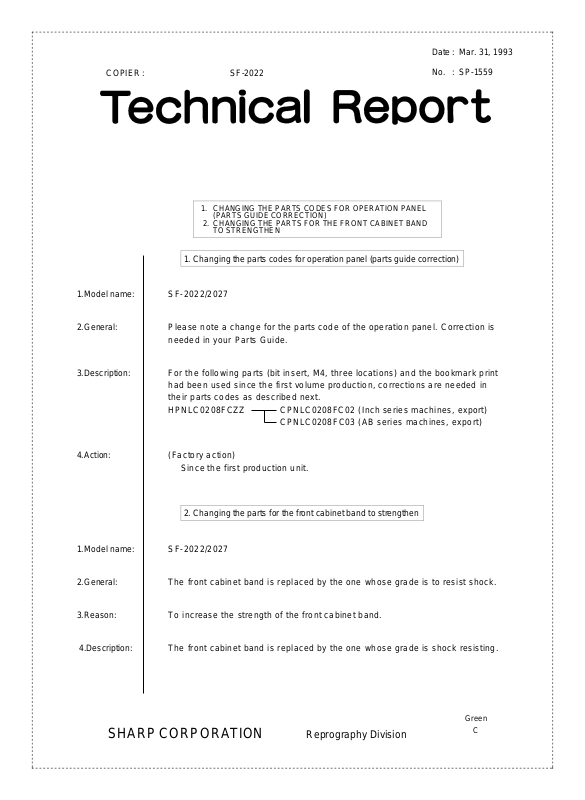 1. Changing the parts codes for operation panel (parts guide correction)