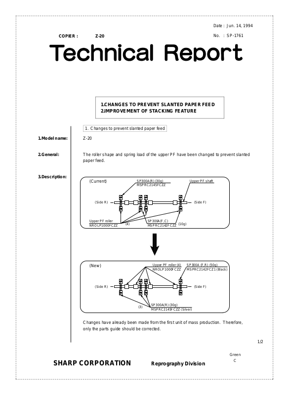 2.General: The roller shape and spring load of the upper PF have been changed to prevent slanted