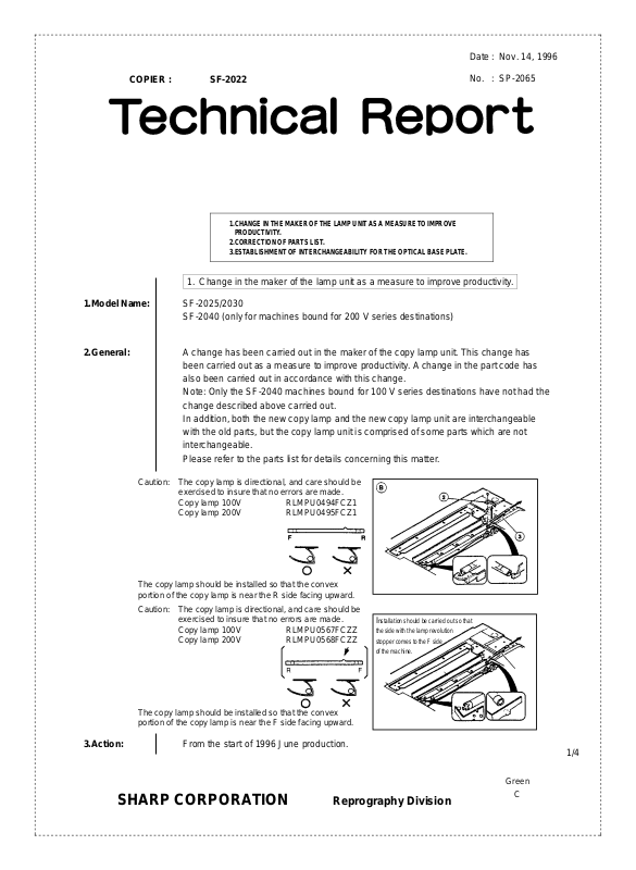 2.General:A change has been carried out in the maker of the copy lamp unit. This change has