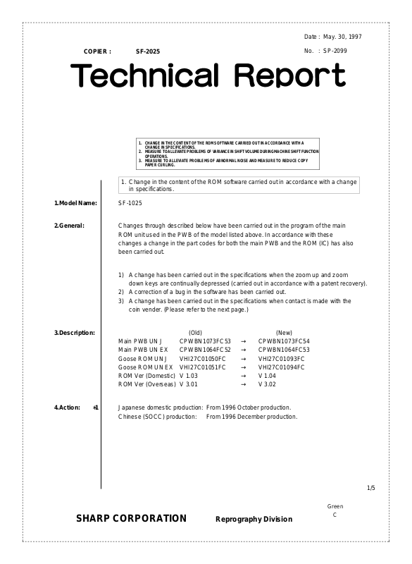 changes a change in the part codes for both the main PWB and the ROM (IC) has also