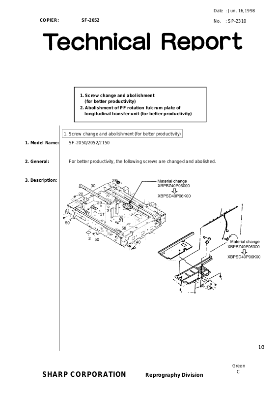 3. Action: From the middle of the production in June, 1998 (Running change)