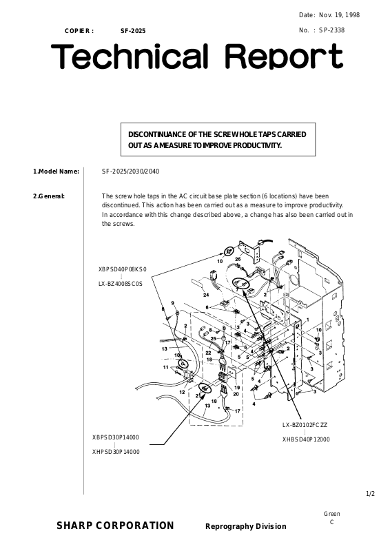 2.General: The screw hole taps in the AC circuit base plate section (6 locations) have been