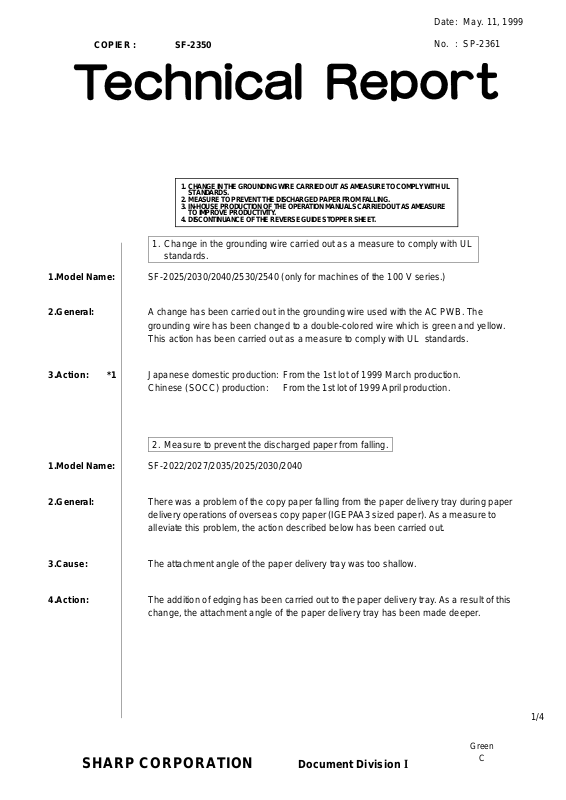 1. CHANGE IN THE GROUNDING WIRE CARRIED OUT AS A MEASURE TO COMPLY WITH UL