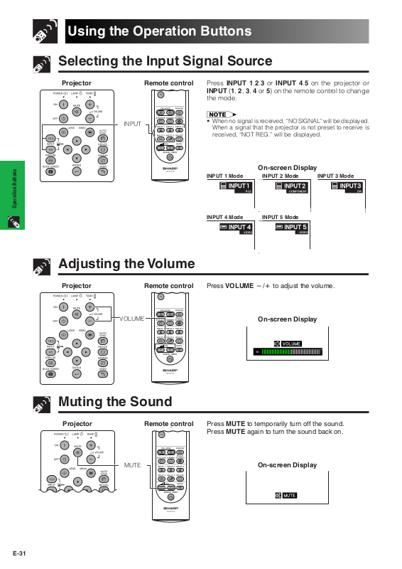 INPUT (1, 2, 3, 4 or 5) on the remote control to change