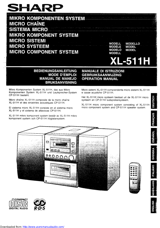SHARP XL-511H User Manual [nl]