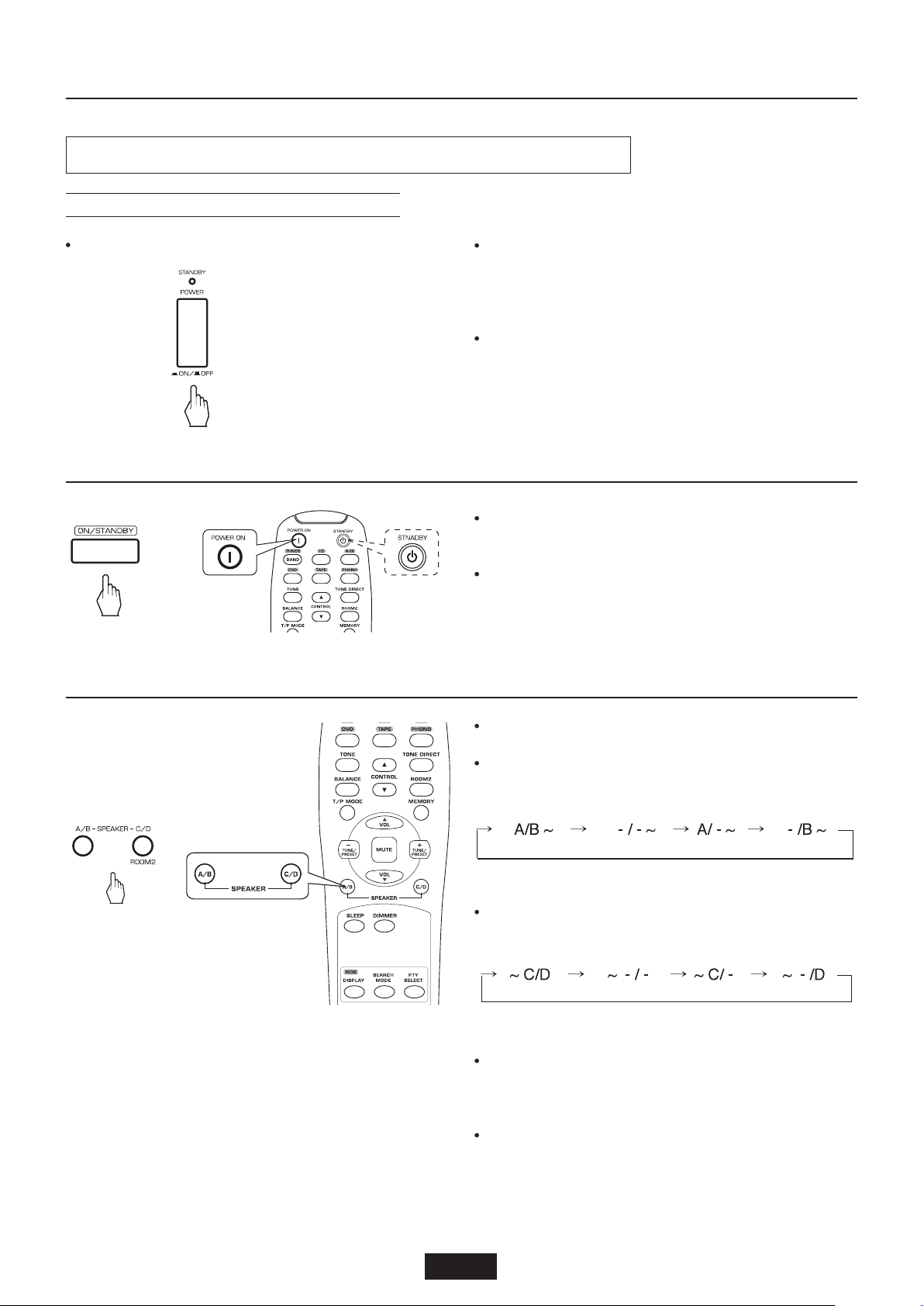 Не подключайте ресивер к розетке электрического питания во время подключения/отключения соединительных кабелей.При использовании RCA аудиокабелей подключайте штекеры левого (L, белый) и правого (R, красный) каналов к соответ-