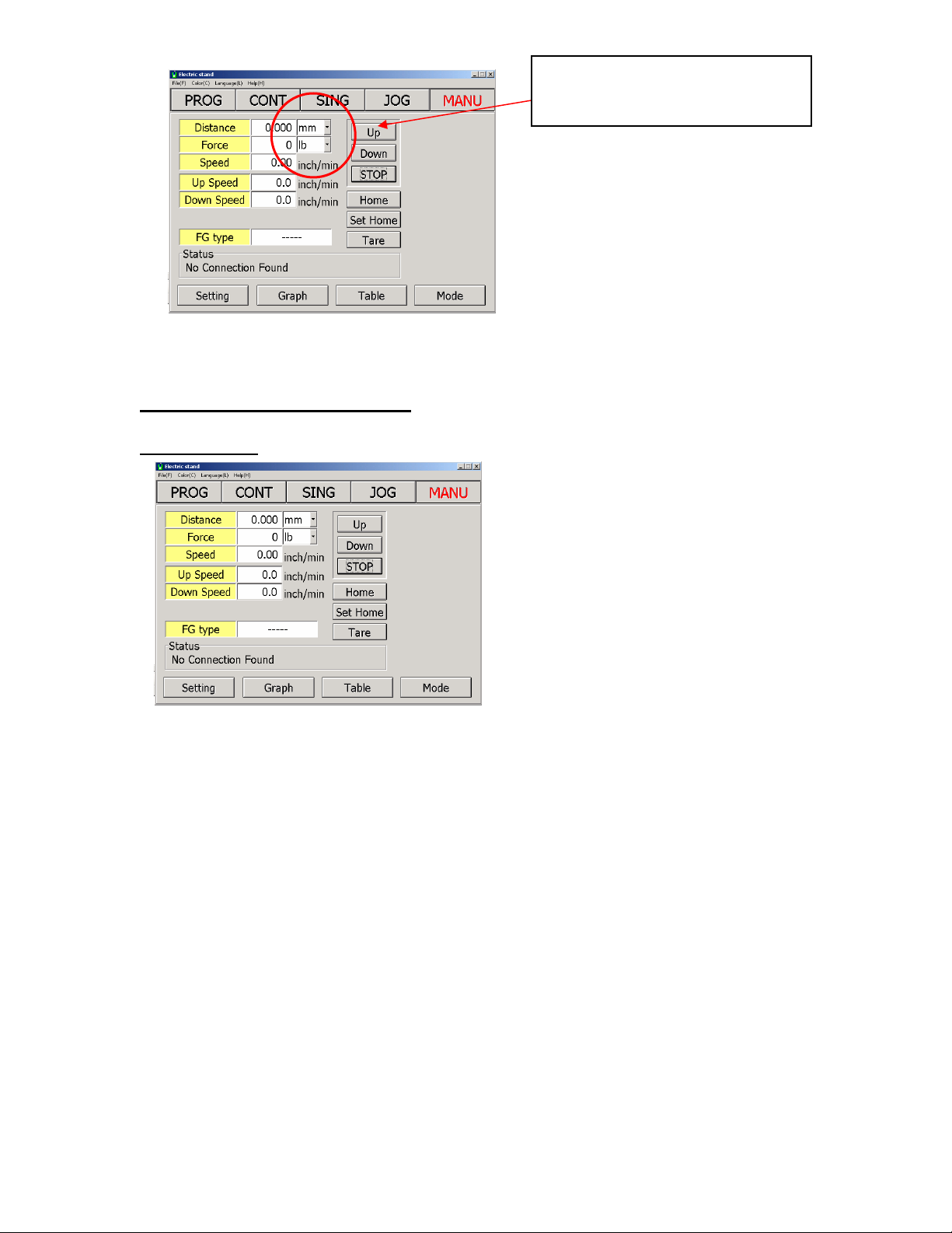 3. SING (Single Mode) Single operation for both direction. The test stand will